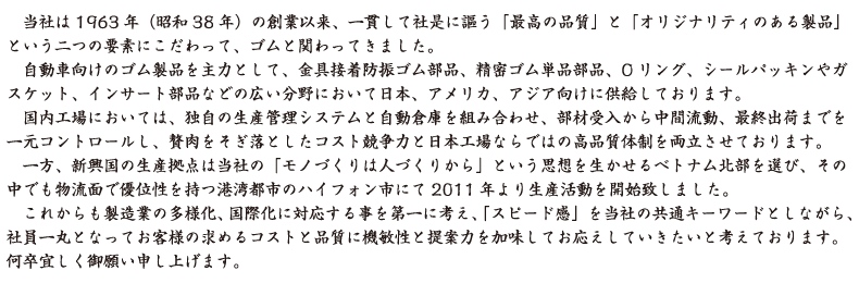| 事業内容 | 工業用ゴム製品の製造・販売 | ||